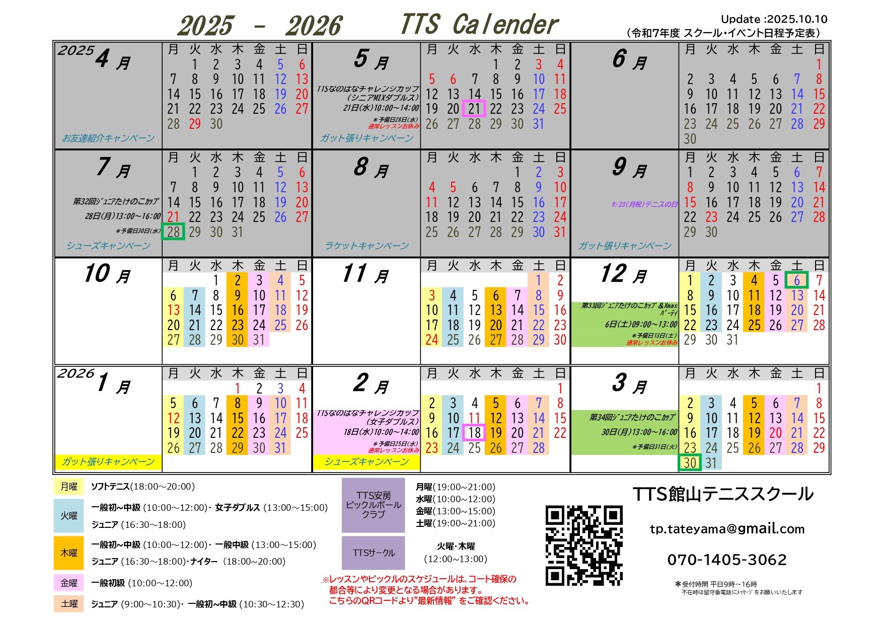 *時間には、まとめの話・コート整備の時間も含まれます。