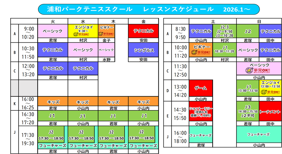 浦和パークテニススクールのレッスンは手軽でお得!大人クラスは月1回から、ジュニアクラスは週1回からご自身のペースに合わせてご受講いただけます!
